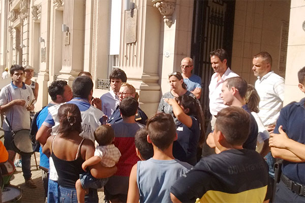 Instantes después, y dado que el jefe comunal, Mariano Barroso se encontraba de viaje, atendieron a los manifestantes la Secretaria de Desarrollo Comunitario María del Carmen Fernández; la presidente del HCD, María José Gentile y el Concejal Paolo Barbieri, quienes fueron recriminados por los manifestantes “por no cumplir sus promesas”.