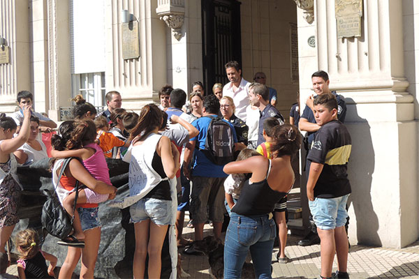 Bajo la consigna “Por una vivienda digna ya!”, expresada en una pancarta, en la mañana de ayer, desde aproximadamente las 9,45 hs. y por espacio de una hora, una veintena de vecinos –en su gran mayoría menores de edad y mujeres-, reclamaron en Plaza Belgrano y posteriormente en la puerta del Palacio Municipal respuestas por parte del Estado Municipal.