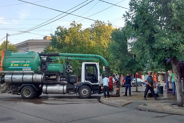 En la tomas gráfica, se observa el trabajo realizado en la mañana de ayer en la intersección de Libertad y La Rioja.