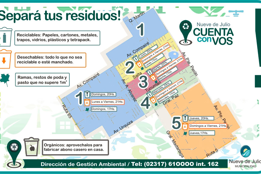 La Municipalidad de Nueve de Julio, a través de la Secretaria de Vivienda y Urbanismo, recuerda que desde el pasado mes de mayo, ha incorporado un camión volcador para realizar exclusivamente la recolección diferenciada (residuos reciclables).