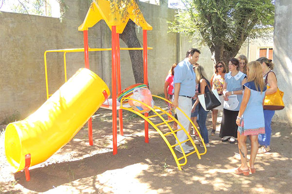 En este caso, se trata de un mangrullo con torres y toboganes, a lo que se agregan elementos para la práctica deportiva (pelotas, aros, conos y elementos de educación física), cumplimentándose el objetivo de equipar a los establecimientos de la ciudad cabecera y las localidades del interior del distrito, a través de dinero proveniente del Fondo Educativo.