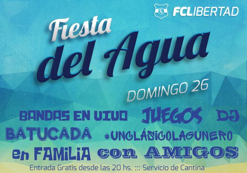 El Club Libertad anuncio la realización de la tradicional Fiesta del Agua, el próximo domingo 26 de febrero con entrada gratis y buen servicio de cantina desde las 20:00 hs.