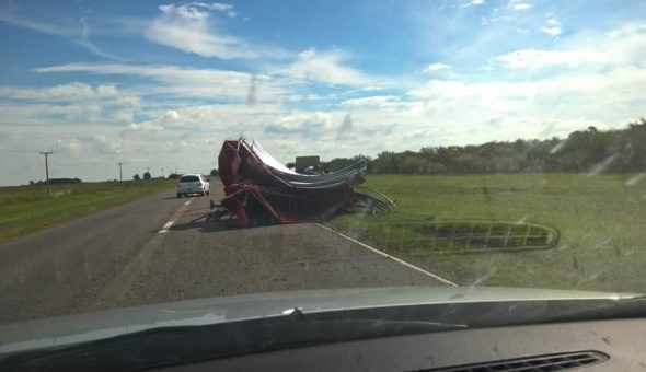 Alrededor de las 16 horas del martes una pick up que se dirigía a Los Toldos proveniente de Guatraché perdió parte de las chapas de silos que transportaba como carga en un chango, al ceder el enganche del mismo a pocos metros de la estación de peaje de Beruti.