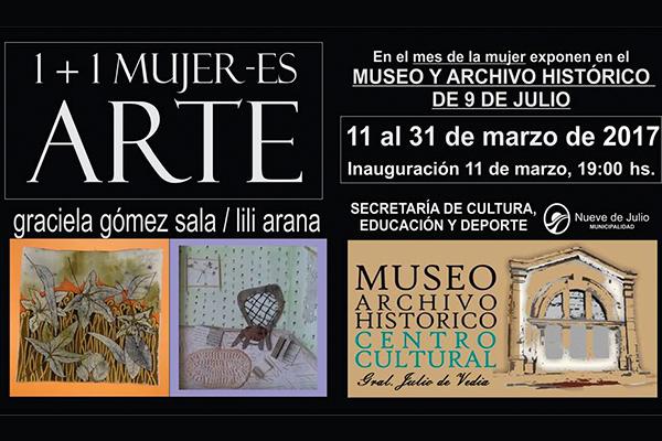A través de la Secretaría de Cultura, Educación y Deportes, y en el marco del Mes de la Mujer, se llevará adelante gracias a las artistas plásticas Graciela Gómez Sala y Lili Arana una exposición de pinturas a realizarse el próximo sábado 11 a las 19 hs. en el Museo y Archivo Histórico Centro Cultural “Julio de Vedia”.