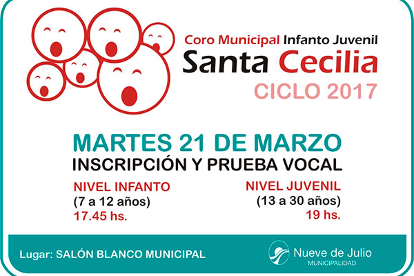 En dicha fecha se realizará la inscripción y una prueba vocal no eliminatoria, a fin de realizar un diagnóstico inicial del ingresante.
