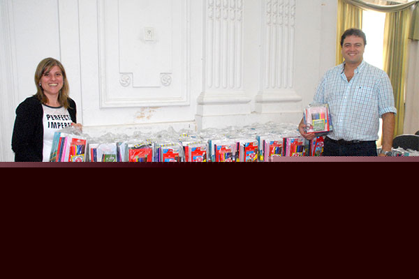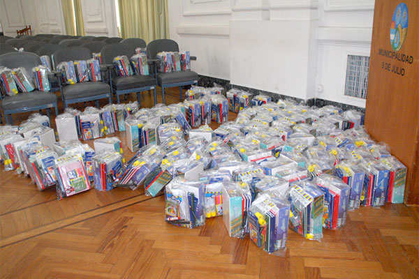 El día lunes, el Intendente de Nueve de Julio, Mariano Barroso, se acercó al Salón Blanco del Palacio Municipal para acompañar la entrega de kits escolares a los empleados municipales, con destino a sus hijos que se encuentren en edad escolar, tarea que desarrolló la Dirección de Recursos Humanos.
