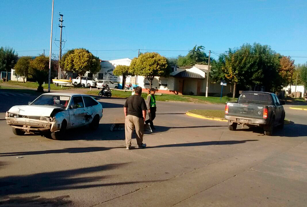 En la mañana de hoy, por causas que se tratan de establecer se produjo un accidente entre una Pick-Up Toyota Hilux y un automóvil VW Gol, sin resultar heridos ningunos de los ocupantes.