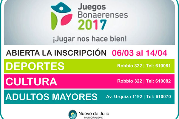 Home PolíticaMunicipalidad y Gobierno Juegos Bonaerenses 2017: inscripción
