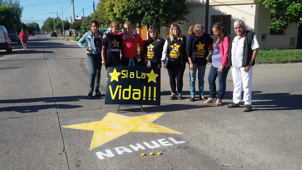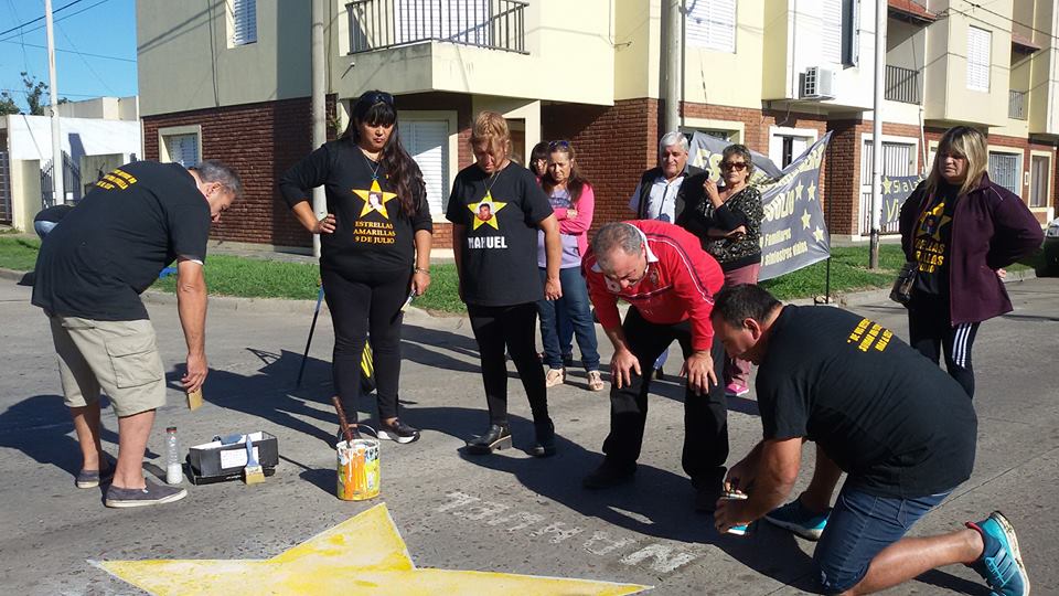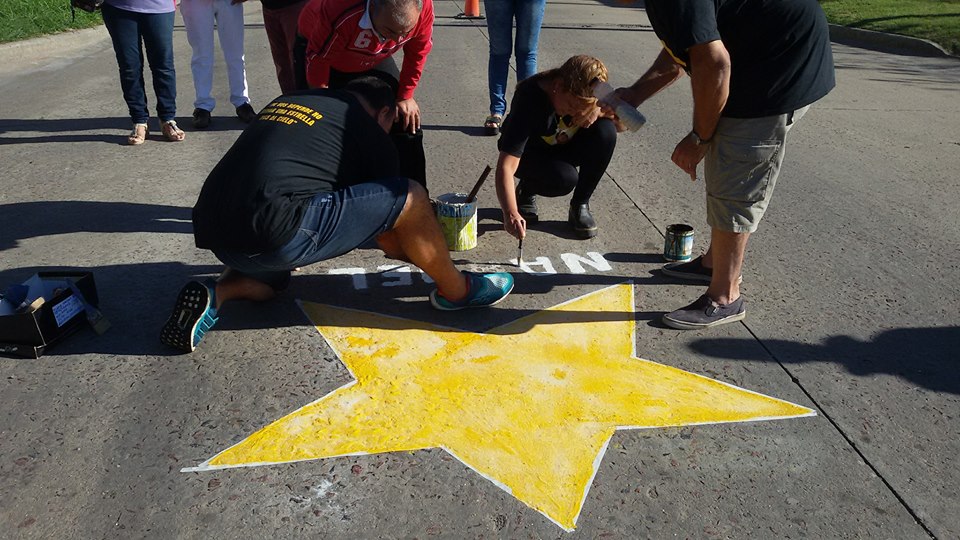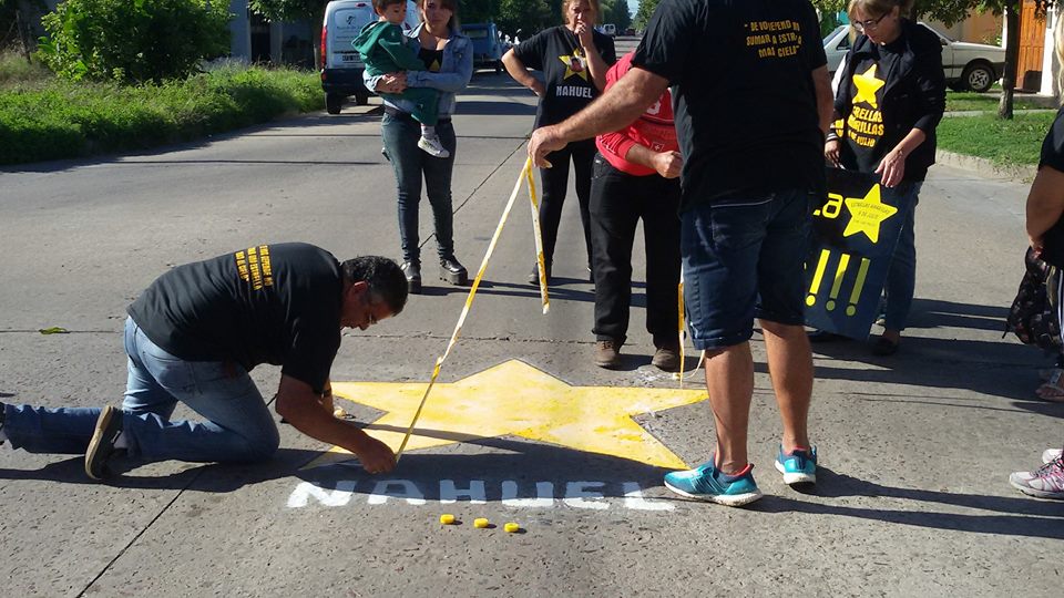 junto a familiares y amigos, repintó la estrella que recuerda a Nahuel Fabiano, por ser la fecha de su cumpleaños número 19.