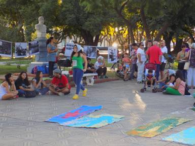 Con siluetazo, carteles hechos a mano, intervenciones artísticas y lecturas conmemoramos este 24 de marzo, con mas convicciones, con reclamos y denuncias y con la certeza de que somos muchos y cada vez más los que nos abrazamos en una misma bandera, la de la Memoria, la Verdad y la Justicia”.