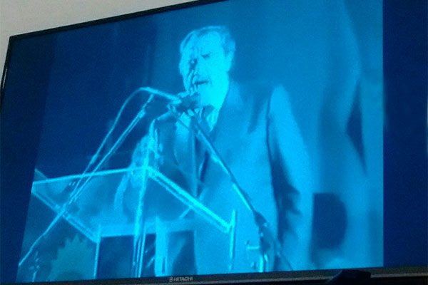 Asimismo, se reprodujeron videos testimoniando la obra política del Dr. Alfonsin, y finalmente se descubrió una placa en su memoria.