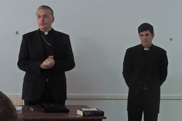 En un primer momento dio la bienvenida a los docentes y directivos cristianos procedentes tanto de los colegios diocesanos como de los congregacionales, mucho de ellos que tuvieron que viajar 300 kilómetros para responder a la convocatoria. Luego presentó al Padre Diego Delgado, quién se desempeñará como delegado para la educación y que colaborará con la Junta Regional de Educación Católica diocesana (JUREC).
