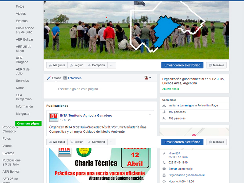 El INTA de 9 de Julio en Facebook