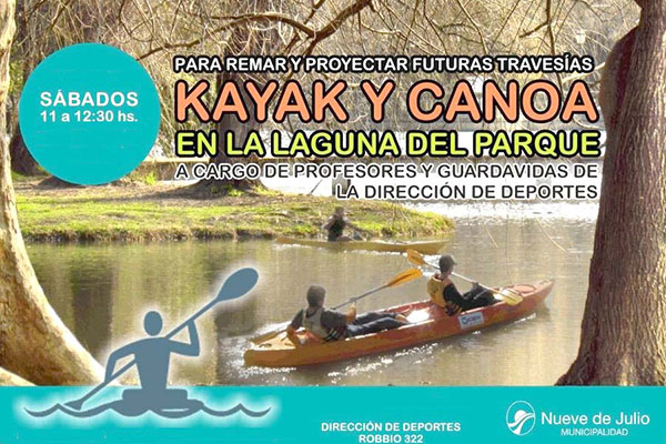 El próximo sábado 15, la Dirección de Deportes de la Municipalidad de Nueve de Julio, renovará la convocatoria a todos los vecinos –adultos y niños- que posean kayaks o canoas, a acercarse al Parque General San Martín, de 11 a 12,30 hs. para remar y proyectar futuras travesías, bajo la coordinación de un profesor y un guardavidas.