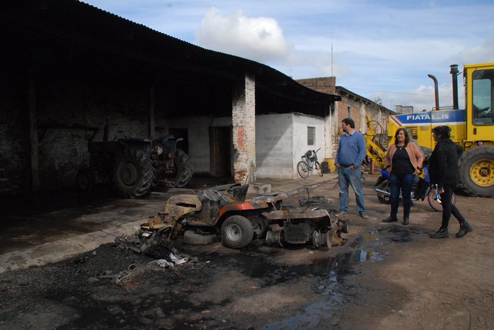 Tras el incendio, presumiblemente de carácter intencional, que se registrara en la madrugada del día domingo en dependencias de la Delegación de Dudignac, afectando de manera total a elementos de trabajo de la misma, tales como tractores cespederos y un tractor agrícola, entre otros bienes; en la mañana de hoy, el Intendente, Mariano Barroso; acompañado por el secretario de Gobierno, Jorge Della Roca, viajaron a esta localidad, donde realizaron una inspección en el lugar y se reunieron con la Delegada, Susana Ruggiero.