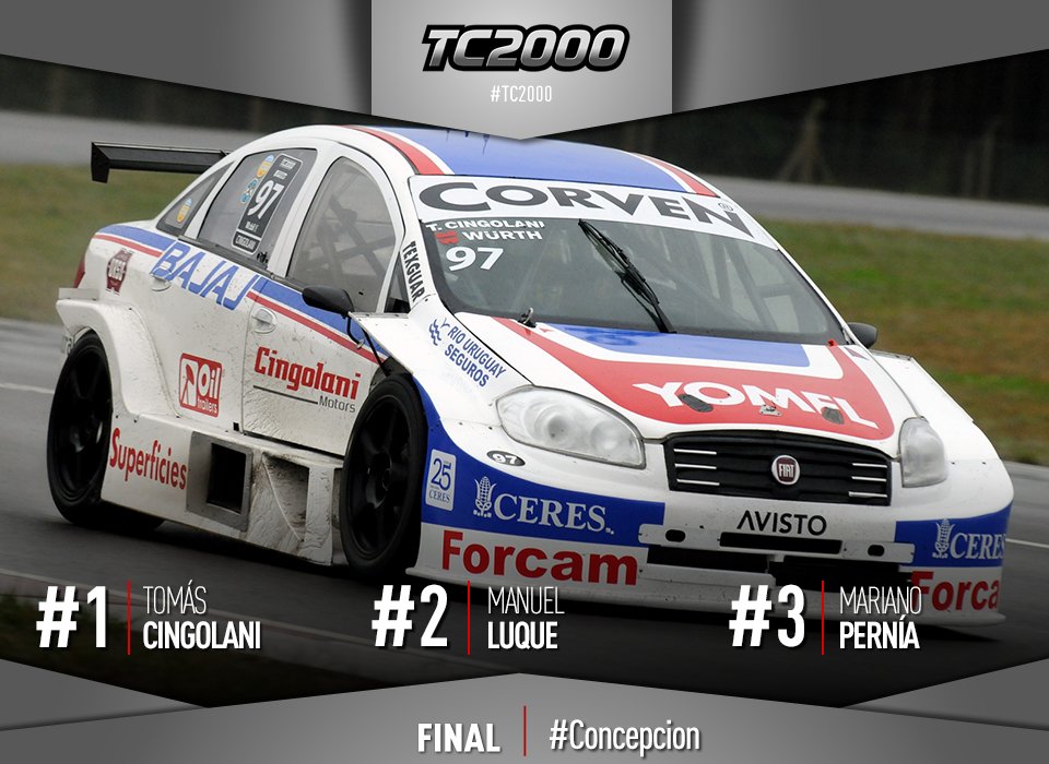 El joven piloto del Ambrogio Racing presionó al líder algunas vueltas pero no tuvo éxito. A cuatro vueltas para la bandera a cuadros, Luque quería más y comenzaba a atacar al líder. Finalmente Cingolani cantó victoria en Concepción del Uruguay. Escoltado por Luque, Pernía, Ciarrochi y Agustín Lima Capitao.