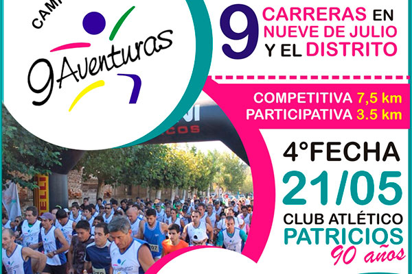 Además, se realizará el “Mini 9 Aventuras” para todos los chicos que quieran participar y se contará con servicio de cantina a beneficio del Club Atlético Patricios, que celebra sus 90 años de vida institucional.