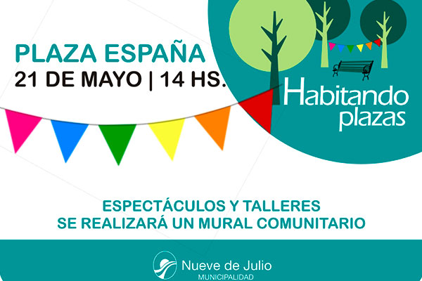 La Municipalidad de Nueve de Julio, a través de la Secretaría de Cultura, Educación y Deportes y la Dirección de Cultura, se encuentra ultimando detalles para la puesta en marcha del ciclo 2017 de “Habitando Plazas”, instancia que tendrá lugar el próximo domingo 21 de mayo a las 14 hs. en Plaza España, luego de que se postergara semanas atrás por cuestiones climáticas.