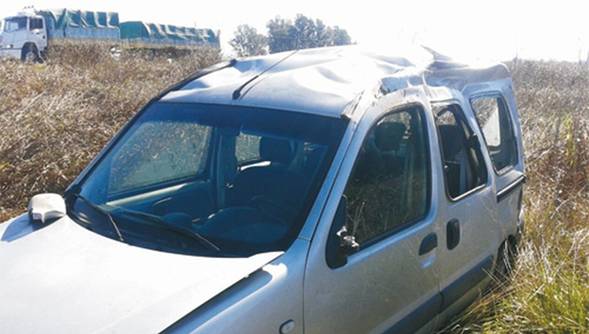 El hecho ocurrió cuando una mujer que circulaba a bordo de una Renault Kangoo, aparentemente habría perdido el control del utilitario despistándose y volcando en la banquina.