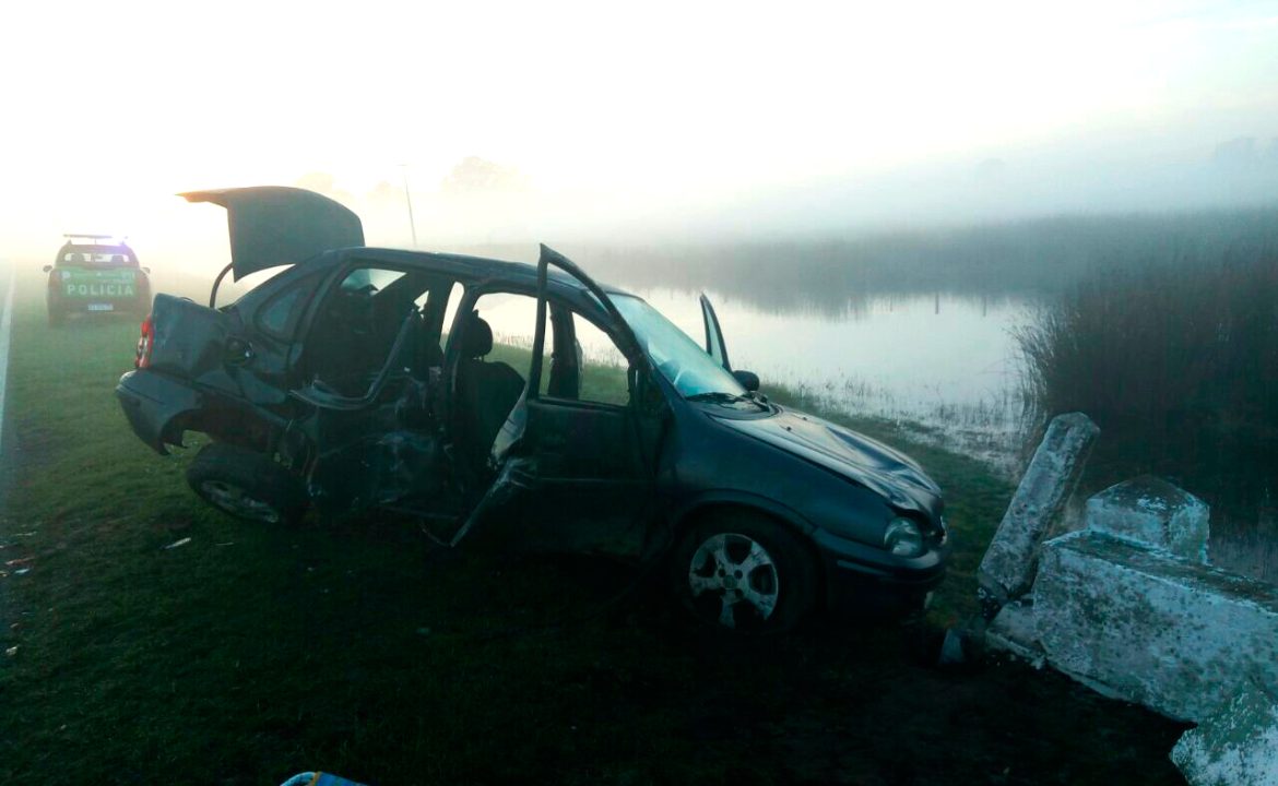 En la fecha, 07:30 horas, aproximadamente personal de esta Estación Comunal se constituyó en la Ruta Nacional nro. 5 altura Km. 238 de este medio, lugar donde se había producido un accidente de tránsito, estableciéndose que un vehículo marca Chevrolet Corsa GBC-432, el cual era ocupado por dos masculinos y dos femeninas, el que por razones de tratan de establecer perdió el control del vehículo e impacto contra una alcantarilla, siendo trasladados sus ocupantes al hospital local, donde se produjo el deceso de una de las femeninas, mayor de edad, oriunda de esta ciudad.