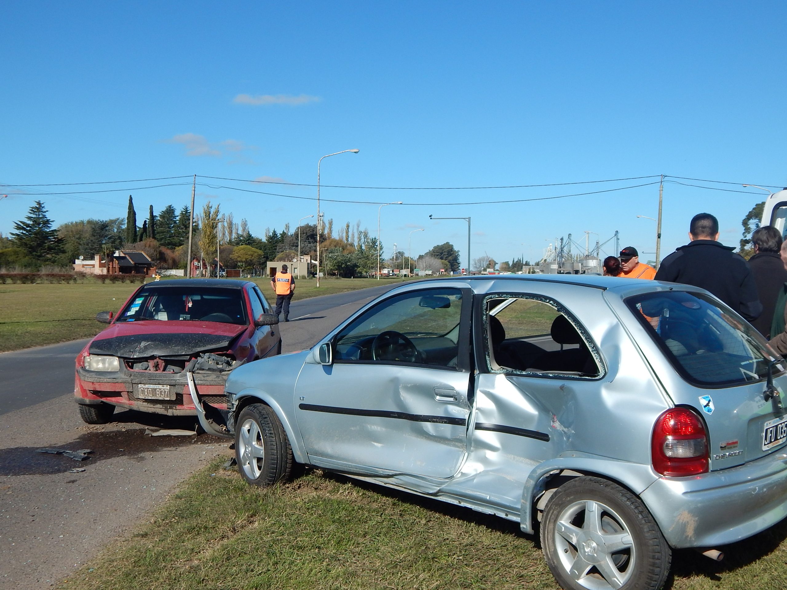 Siendo aproximadamente las 14:00 hs. de hoy, en Av. Mitre con el cruce de ruta provincial Nº65, se registró nuevamente un violento impacto entre dos automóviles. En el cual un vehículo Chevrolet Corsa, color gris, conducido por un masculino oriundo de nuestra ciudad, que transitaba por Av. Mitre hacia la rotonda, por circunstancias que aún tratan de establecer fue embestido por un VW Gol, color rojo, que circulaba por ruta Nº65, sentido Gral. Viamonte. Este último estaba ocupado por un matrimonio con dos menores, oriundos de la ciudad de San Nicolás.