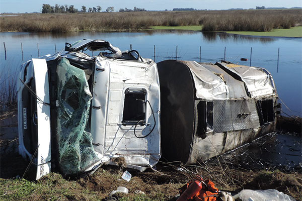 Asistieron rápidamente al lugar Bomberos Voluntarios de Dudignac, quienes constataron que efectivamente un camión marca Mercedes Benz Ateco, dominio AA 735 IP, propiedad de la empresa Vial Agro S.A, encargada de la reparación de la cinta asfáltica de ruta 65,en el tramo 9 de Julio – Santos Unzué, había volcado sobre una de las banquinas.