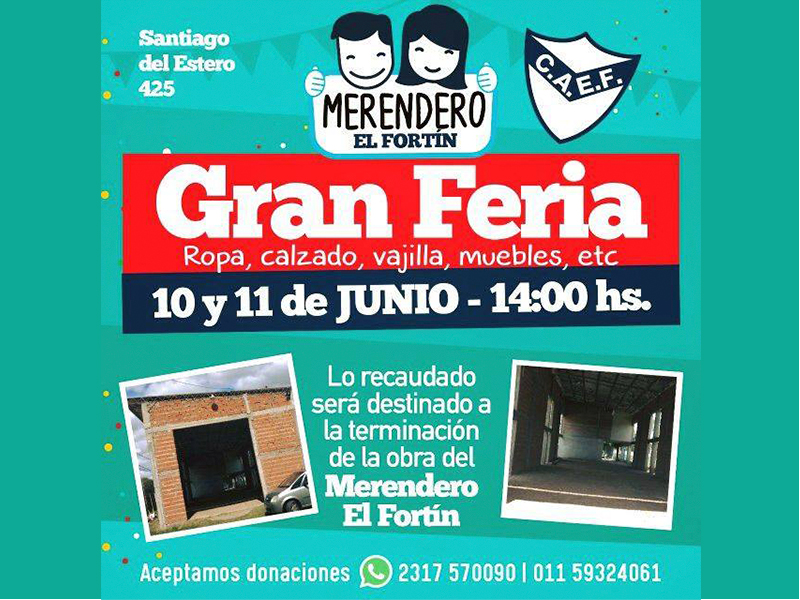 Lo recaudado será destinado a la terminación de la obra del Club, se aceptan donaciones de ropa, calzado, vallija, muebles a los siguientes numeros 2317-570090 o 011-59324061.