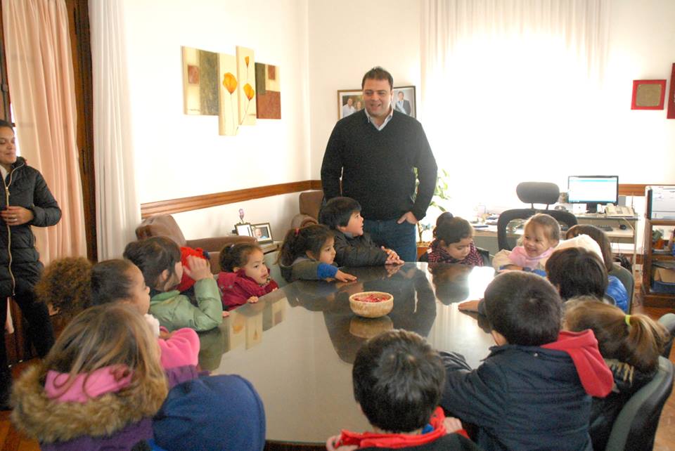 En la mañana del martes, el Intendente Municipal, Mariano Barroso, recibió a alumnos de la Sala Multiedad (4 y 5 años) del Jardín de Infantes N°913, quienes efectuaron una recorrida por el Palacio Municipal, en el marco del proyecto “Museo a las Escuelas” que se lleva adelante a través del Museo y Archivo Histórico “Julio de Vedia” y su responsable, Prof. Roberto Castro.