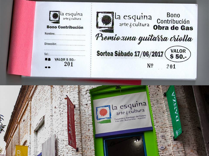 El Centro Cultural "La Esquina Arte y Cultura" llevará a cabo un bono contribución para tener gas natural, cuyo premio es una "Guitarra Criolla", con un valor de $50 y sortea el día sábado 17/06/2017.