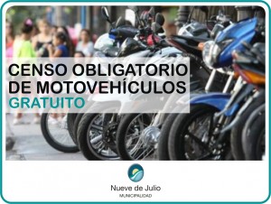 La Municipalidad de Nueve de Julio, a través de la Dirección de Tránsito, recuerda que se encuentra vigente el censo obligatorio de motovehículos en todo el distrito, en cumplimiento de la Ordenanza 4467 de 2008.