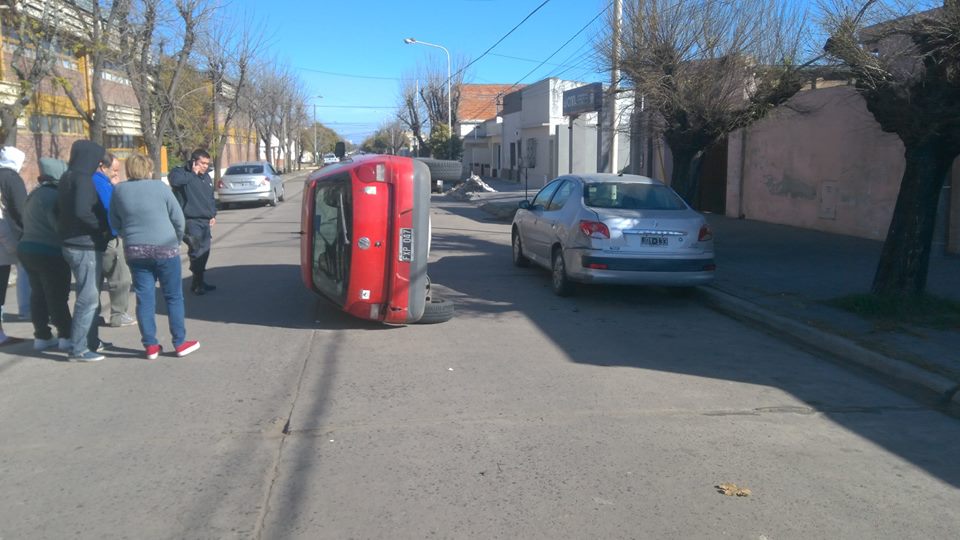 Siendo aproximadamente las 12:45 hs. de hoy domingo, un automóvil VW Gol color rojo, que circulaba por Avenida Tomás Cosentino, giró para retomar la calle Tucumán y por motivos que tratarán de establecerse impactó contra un automóvil Peugeot 207 Compact color gris y terminando volcando sobre su lateral izquierdo.
