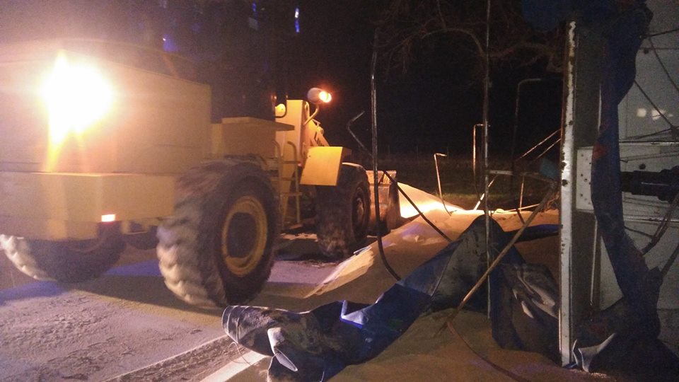 Se solicita personal y Maquinaria de Obras y Servicios Públicos de la Municipalidad de 9 de Julio para remover la carga esparcida y proceder a liberar la ruta obstruida.
