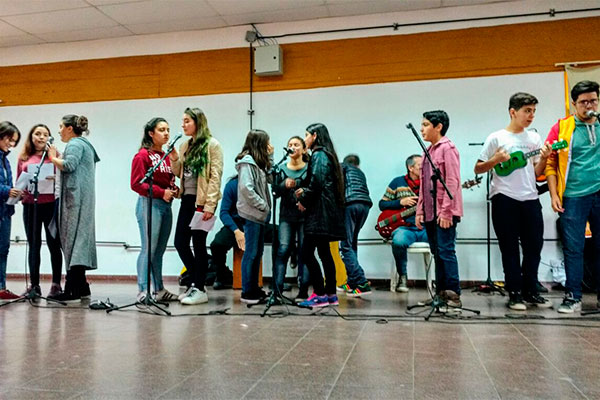 “Dentro del proyecto que hemos denominado Estudio Audiovisual, conformamos una banda con distintas comisiones como la de canto, música, baile, edición y montaje y guión; en los que nos ayudan los profesores de las distintas asignaturas y lo que ha dado origen a la producción de un audiovisual referido a la paz y la unidad, para lo que contamos con la coordinación de Sergio Di Mario y Lucía Cantero”, explicó el docente.