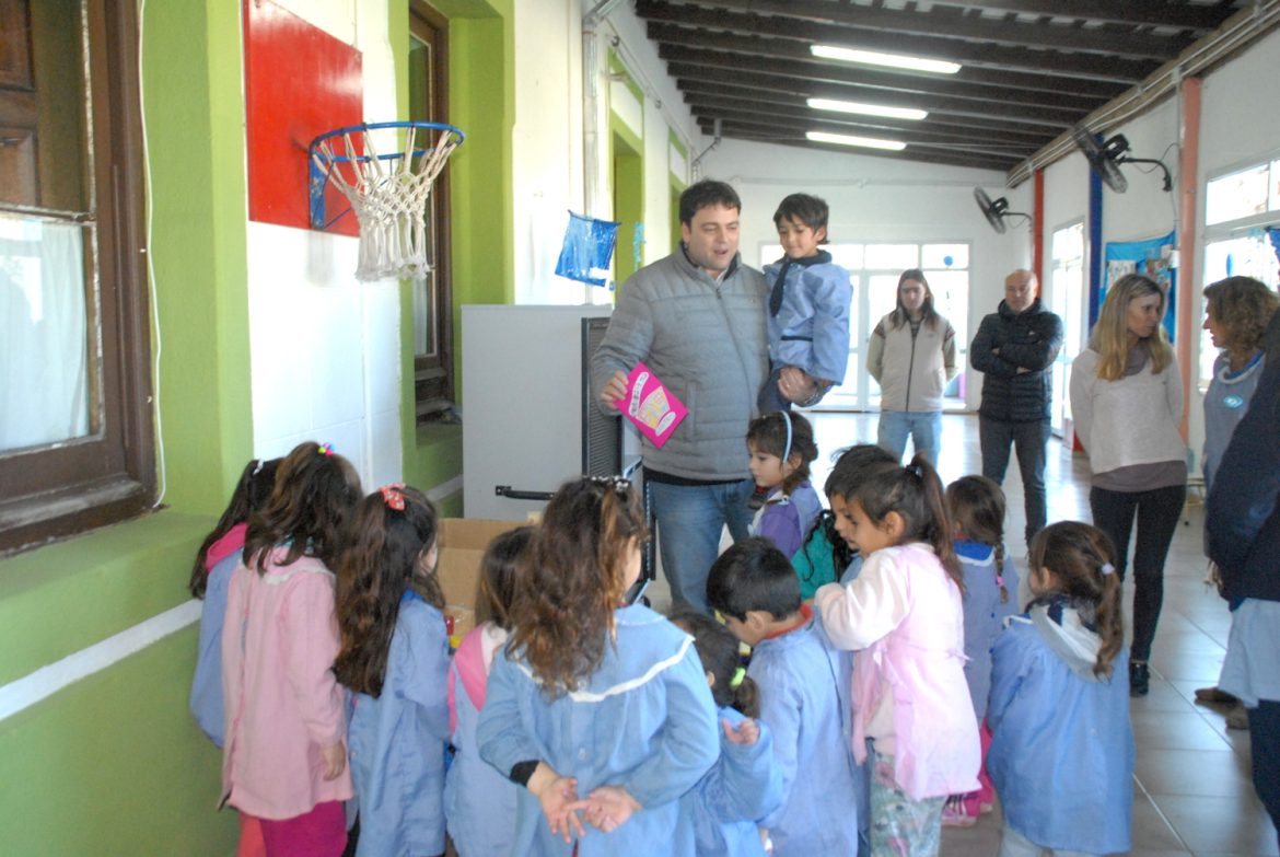 En primera instancia, en el Jardín de Infantes Nro. 909 “Lola Labbé”, el jefe comunal procedió a la entrega de una ludoteca y una computadora; en tanto que posteriormente, en el Jardín Nro. 914