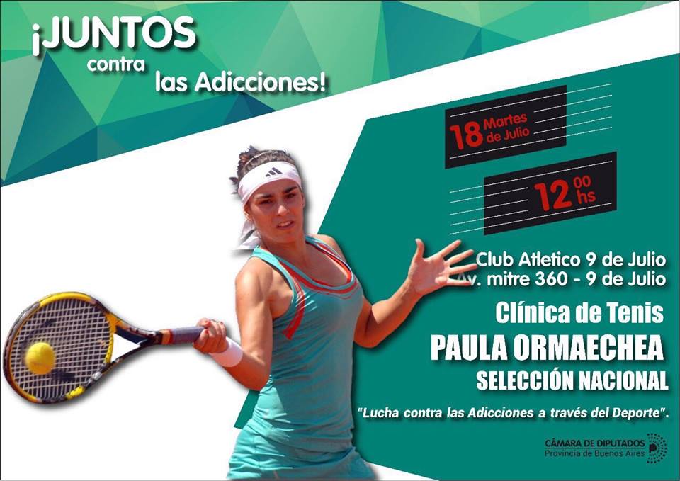 La podés disfrutar de la reconocida tenista el próximo martes 18 de Julio, en el Club Atlético 9 de Julio desde las 12:00 horas, clínica de tenis será abierta a la comunidad y gratuita.