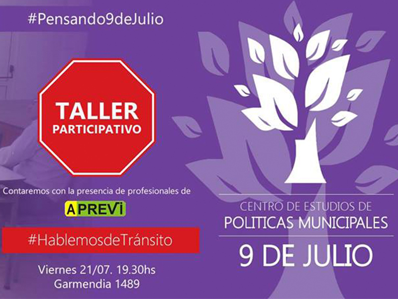 El Centro de Estudios de Políticas Municipales (CEPM), invita a toda la comunidad a un Taller Participativo sobre tránsito a realizarse el próximo viernes 21 de julio, a las 19.30 horas, en su sede de Garmendia 1489.