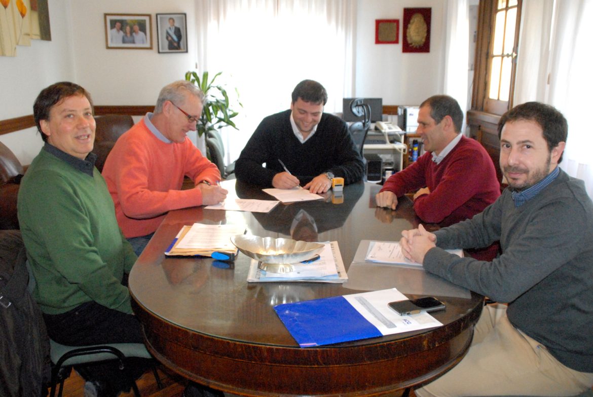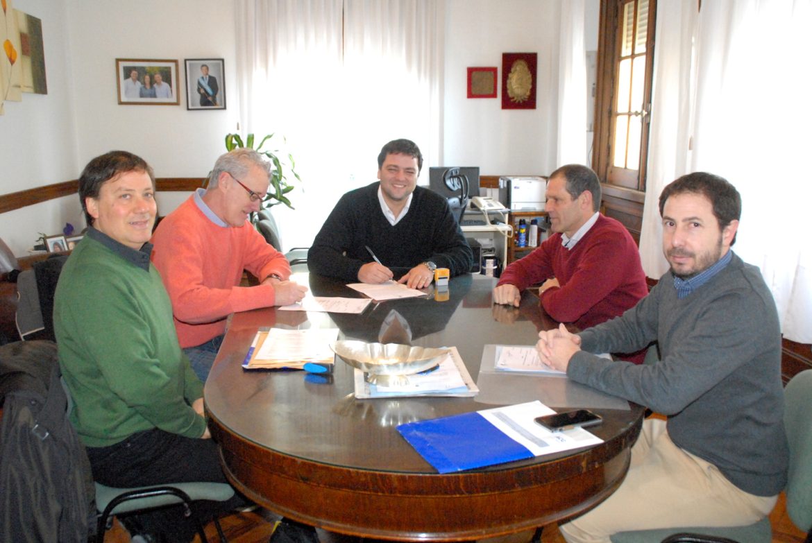 En la mañana de hoy el Intendente Municipal Mariano Barroso acompañado por el Secretario de Vivienda y Urbanismo Arq. Osvaldo Fons, el Asesor Legal y Técnico Dr. Juan Luis Buonano recibió en su despacho a representantes de la firma Alquivia S.R.L con quienes procedió a firmar el contrato de las 25 primeras viviendas ubicadas en el Barrio Los Aromos.