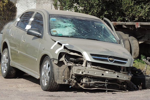 El violento accidente fue protagonizado por un Chevrolet Astra, conducido por Alan Carballo, con domicilio en calle Naudín, pasaje 2, de nuestra ciudad, y un camión jaula, de la ciudad de 25 de Mayo.