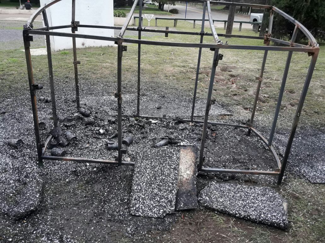 Allí, autores ignorados, destruyeron e incendiaron el mismo por completo, como muestra la fotografía.