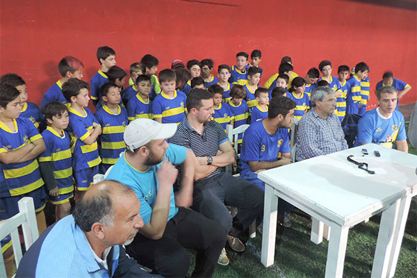 Daniel Ingratti, presidente de la institución, explicó “la reunión de hoy es para presentar la nueva indumentaria de la Escuelita de Fútbol. Cuando asumí la presidencia del club, a principios de 2016, lo hice con la idea de reestructurar la institución y una de las cosas que debíamos fortalecer eran las inferiores. Hemos conformado una Comisión de Padres, y acá está el primer logro: ropa para todos los chicos”.