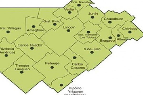 La última columna de distritos la componen Arenales: 13.703; Rivadavia: 13.355; Carlos Tejedor: 9.750; Pinto: 9.192; Alberti: 8.974; Hipólito Yirgoyen: 7.694 y Florentino Ameghino: 7.535 (el más pequeño de los 19 municipios que conforman la cuarta sección electoral)
