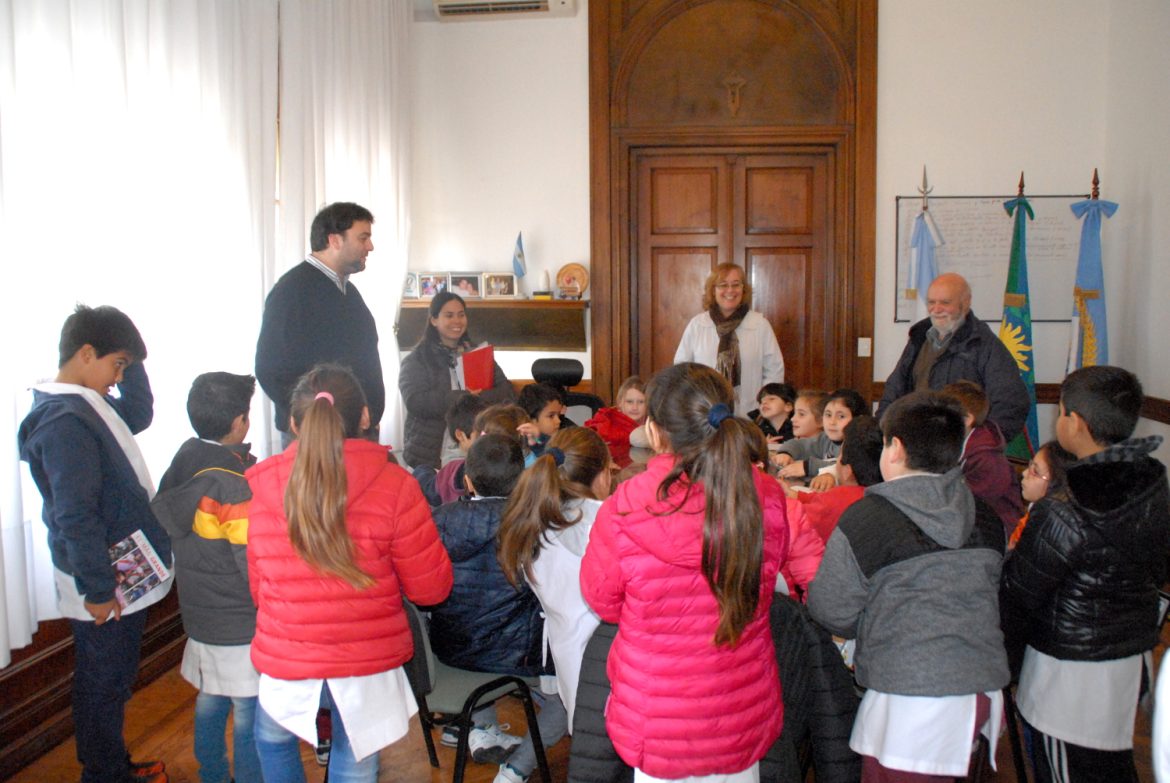 En la mañana de hoy, alumnos y docentes de la Escuela Primaria Nro. 55 (ex Comercio), en el marco del Proyecto “Museo a las Escuelas”, visitaron el Palacio Municipal, donde recibidos por el Intendente Municipal, Mariano Barroso, acompañado del Director de Museos y Archivo Histórico, Prof. Roberto Castro.