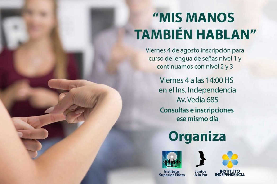 Curso destinado a todo público.Reconocer la lengua de señas y su estructura gramatical. Desarrollar la destreza necesaria para la práctica comunicativa en lengua de señas.Interpretar y comprender la postura corporal y visual. Comprender la construcción simbólica del mundo y la comunicación de ideas y sentimientos, a través de la lengua de señas. Analizar, caracterizar y reproducir los diferentes diálogos en Lengua de Señas Argentina.