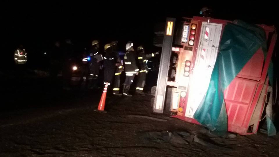 Anoche, aproximadamente a las 22:00 Hs. se produjo el vuelco de un camión en Ruta Provincial Nº65, había volcado un acoplado cargado de girasol, dicha carga quedó esparcida a lo largo de 60 mts sobre la cinta asfáltica y la banquina, por lo que esta cortaba la circulación vehícular.