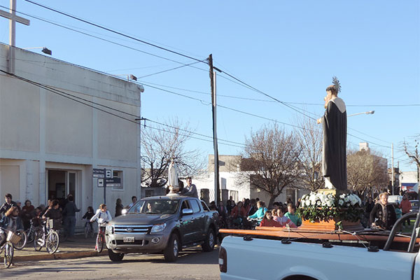 Continuó por la tarde, frente al templo, con una emotiva apertura musical de las ban-das municipal y la sinfónica de la Policía de la Provincia de Buenos Aires. De inmediato comenzó la caravana en auto y en bicicleta, a la que el mismo obispo acompañó y que tuvo su primera estación en la parroquia de Fátima. Desde allí se trasladó a la Virgen, también patrona de la ciudad, hacia la Capilla Sagrado Corazón, donde permanecerá custodiada hasta tanto se inaugure el futuro santuario, previsto para el próximo 13 de octubre.