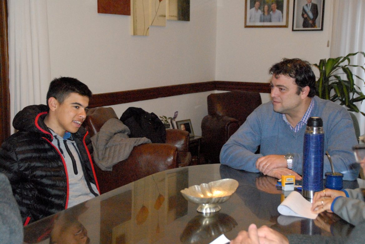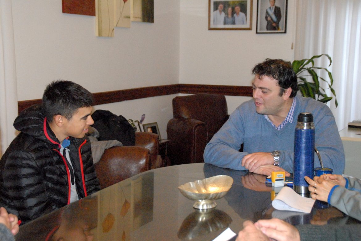El ciclista nuevejuliense Federico Martínez, quien regresó días atrás de México, donde participó de una importante competencia internacional representando a nuestro país; y se apresta a viajar al Mundial de Italia junto a la Selección Argentina de Ciclismo, fue recibido en la mañana de hoy por el Intendente Municipal, Mariano Barroso, quien mantuvo con el joven un ameno diálogo.