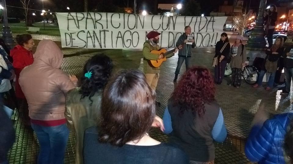 La marcha nacional, también tuvo convocatoria en nuestra ciudad, a las 19 hs. del viernes 11, en Plaza General Belgrano, en reclamo de la aparición con vida del joven Santiago Maldonado, quien desapareció hace más de una semana durante la violenta represión de Gendarmería al pueblo mapuche."Exigimos aparición con vida de Santiago", señaló el lema de la movilización.