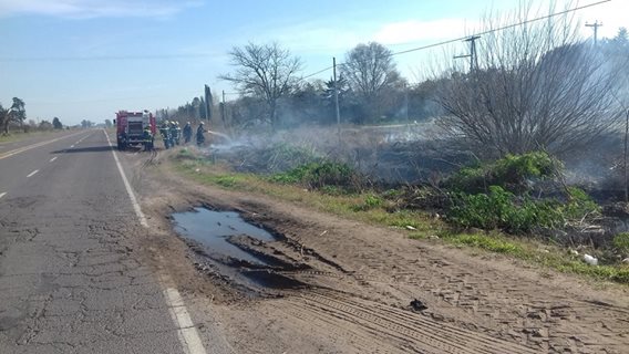 En la mañana de hoy, siendo aproximadamente las 10:05 hs. se recibe un llamado dando cuenta que en Ruta Provincial 65 y Av. Eva Perón habían tomado fuego pastos naturales en la banquina.