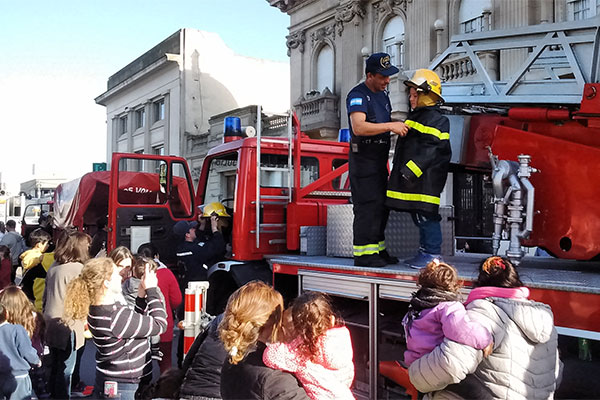 El pasado sábado, a lo largo de toda la tarde, frente al Palacio Municipal, una importantísima cantidad de niños de distintas edades tuvieron la posibilidad de conocer el trabajo de los Bomberos Voluntarios de 9 de Julio, subir a las autobombas, probarse el casco y hasta ayudar a accionar las sirenas, en una original propuesta que llevó adelante la Asociación, acompañando los festejos del Día del Niño.