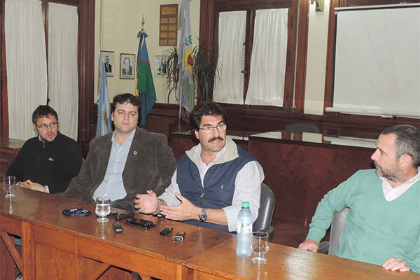 Previo al diálogo con el periodismo, el Ministro mantuvo una reunión con el intendente, Mariano Barroso, funcionarios, concejales, el diputado provincial Mauricio Vivani, integrantes de Sociedad Rural de 9 de Julio, del